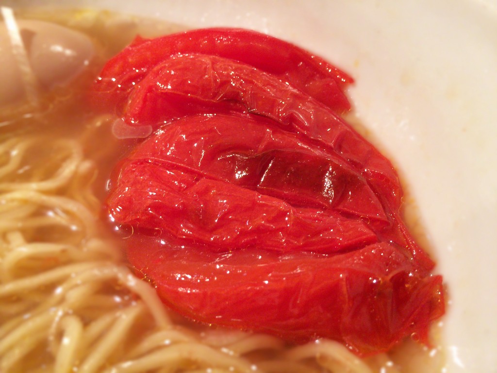 注文したのは塩ラーメンに焼きトマトと黒味玉をトッピングしたもの。