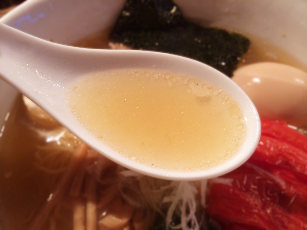 スープはお店の説明書きによると「鶏ガラを中心に7種類の香味野菜、煮干し、ムロ節、羅臼昆布などからつくった清湯スープに、モンゴル産岩塩をベースにつくる塩ダレを合わせた」ものとのこと。