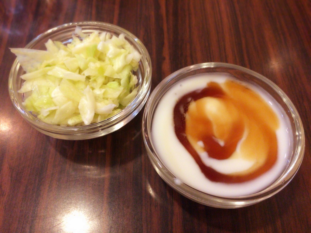 注文するとすぐに、ミニカップのサラダとヨーグルトが出てきます。