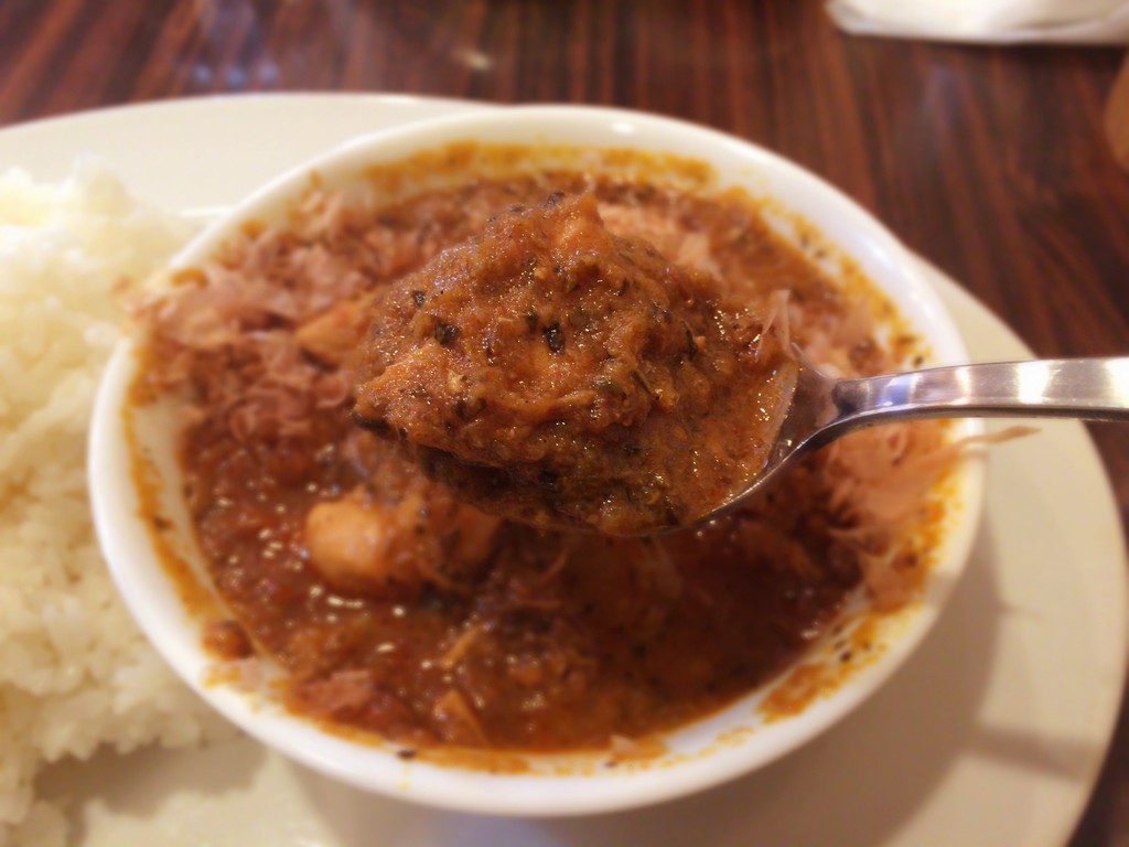 まずは別皿で供された鰹ぶしをカレーソースに振りかけます。