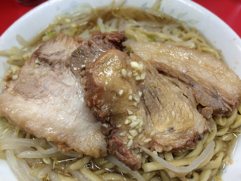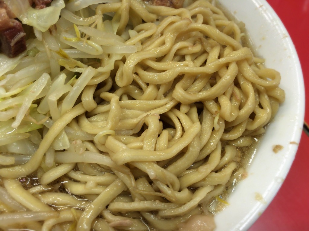 麺の量は並盛りながら裕に300gは超え、二郎の中でも多い部類。