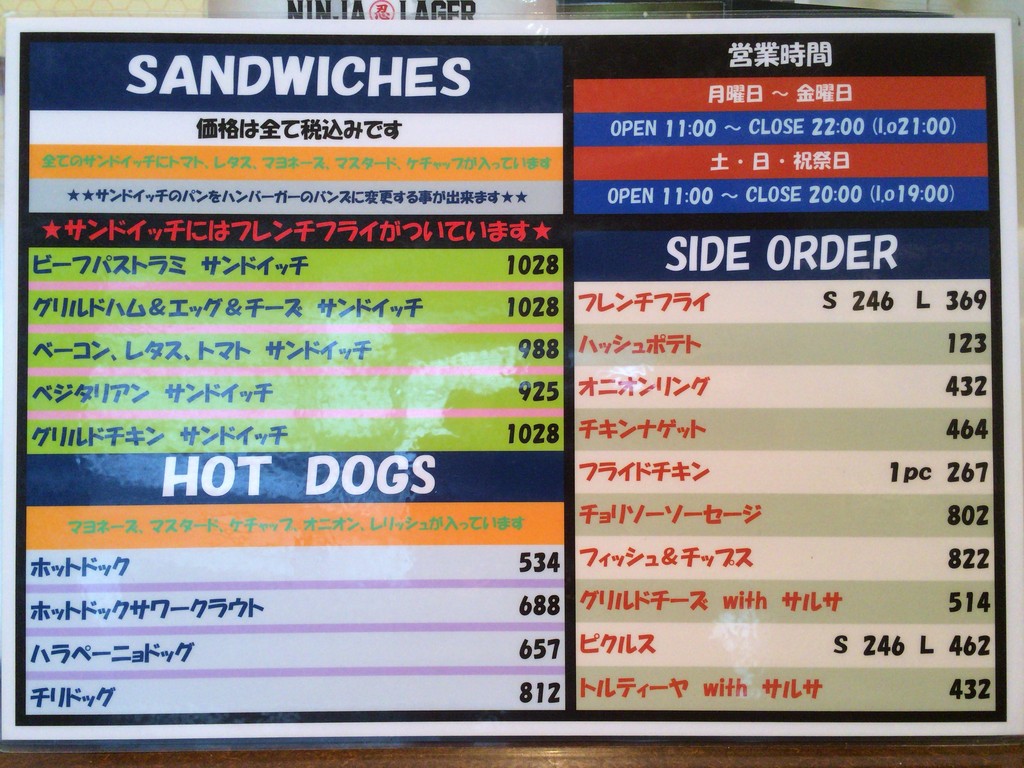 メニューはハンバーガーが13種あり、その他にサンドイッチやホットドッグなどもあります。