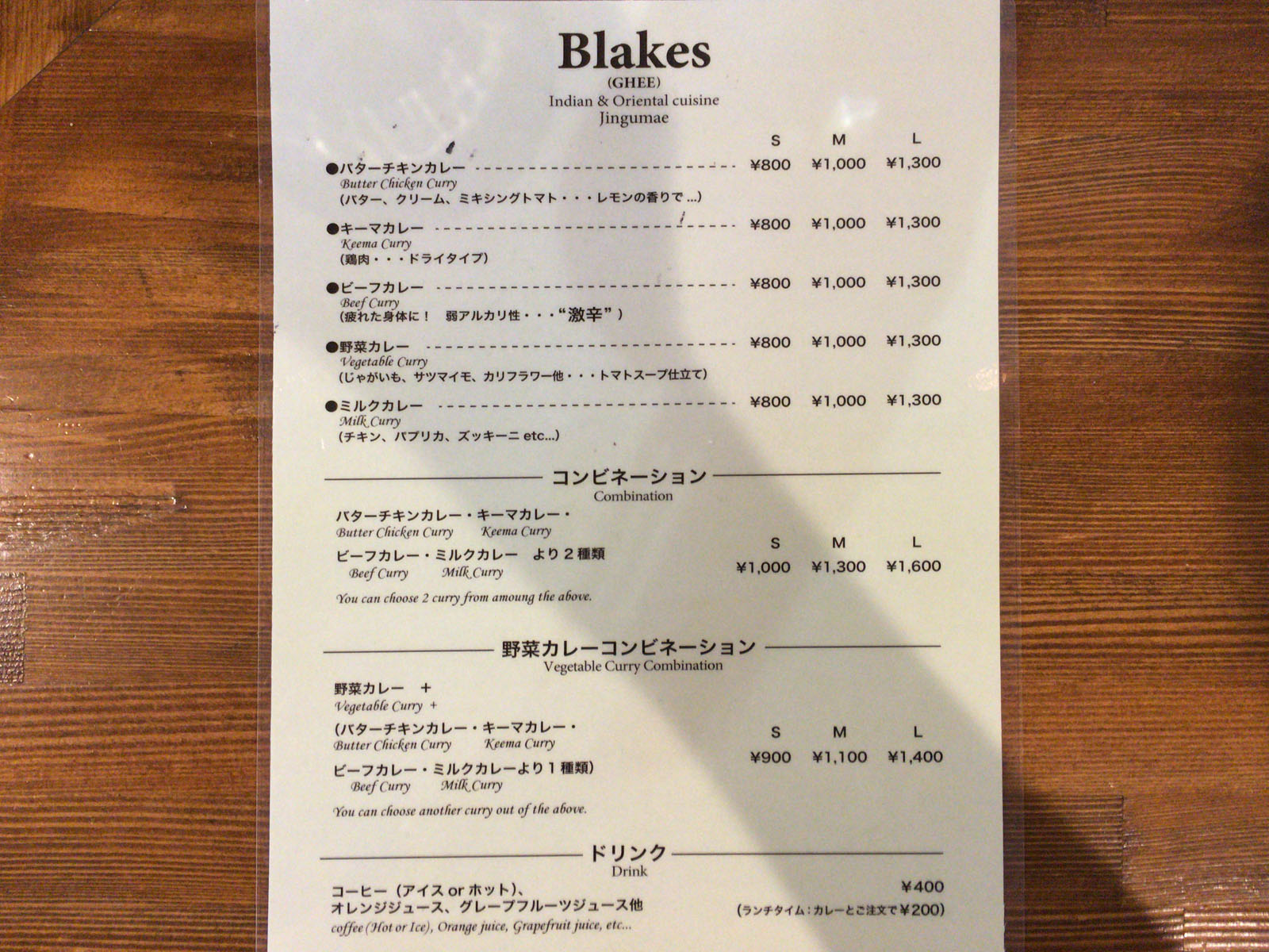 2016年7月30日(土)は、神宮前のカレー屋『Blakes(GHEE)』でランチ。