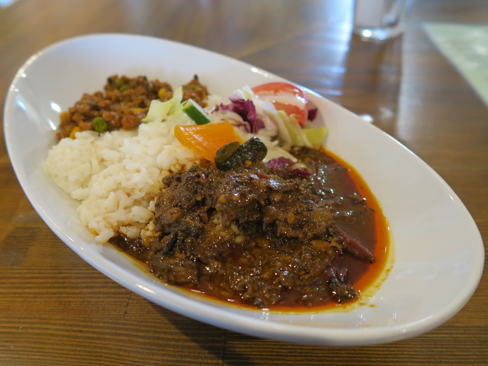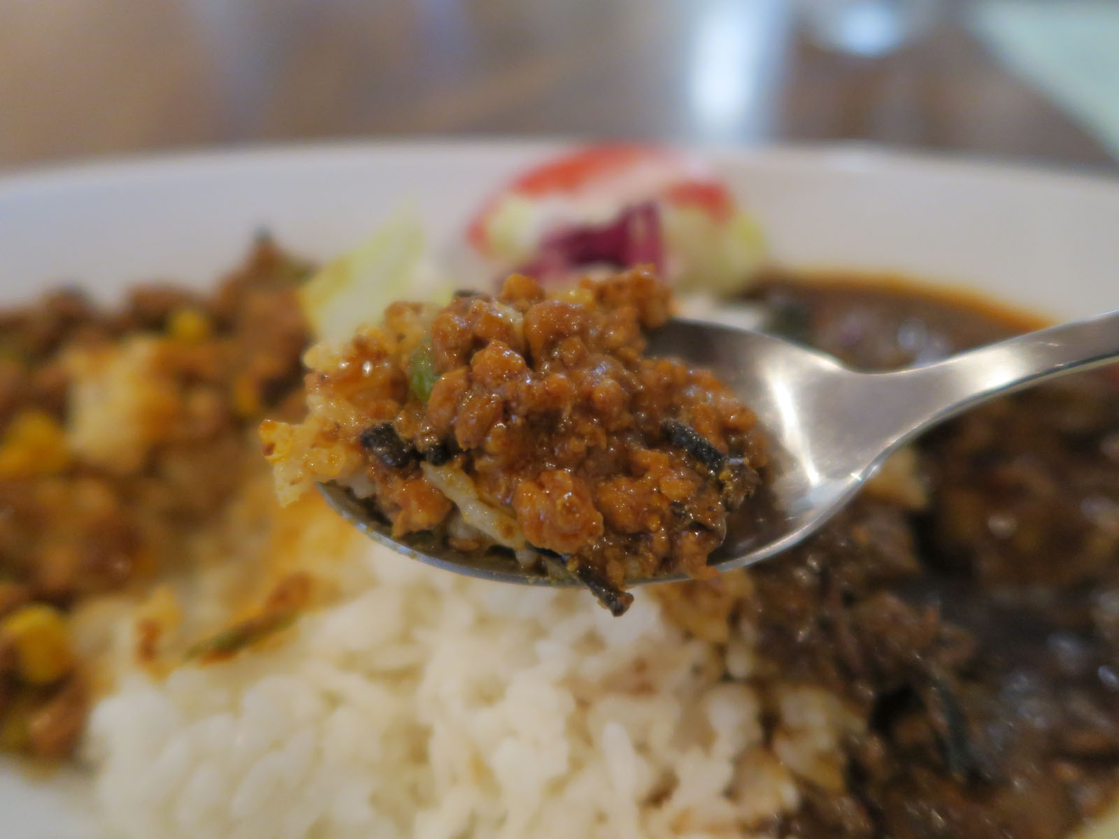辛さは穏やかで香ばしく、野菜の甘みが極立ち、弾力のある鶏ひき肉は噛むほどに旨味が出てきます。