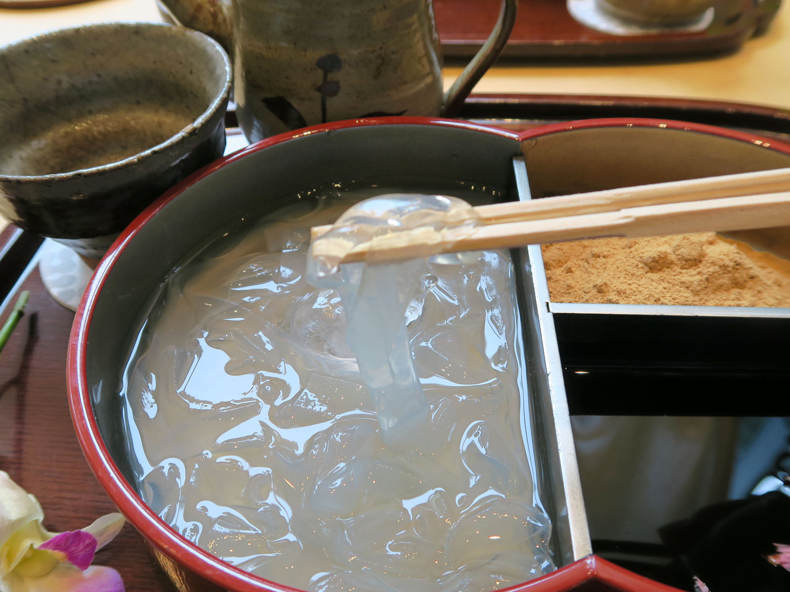 蕨もちを半分食べたところで葛切りとチェンジ。