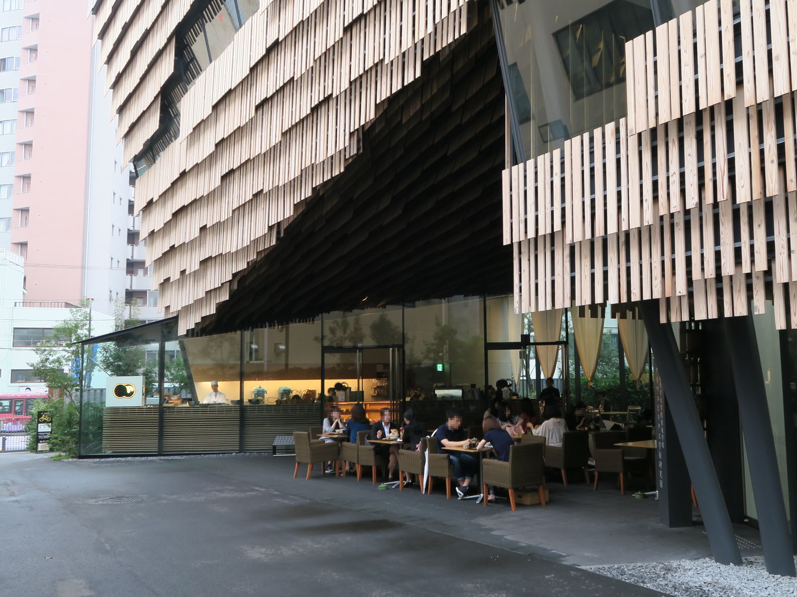 細長い杉板が張り巡らされたデザインの建物は、新国立競技場を設計した建築家の隈研吾氏が手掛けたものとのこと。
