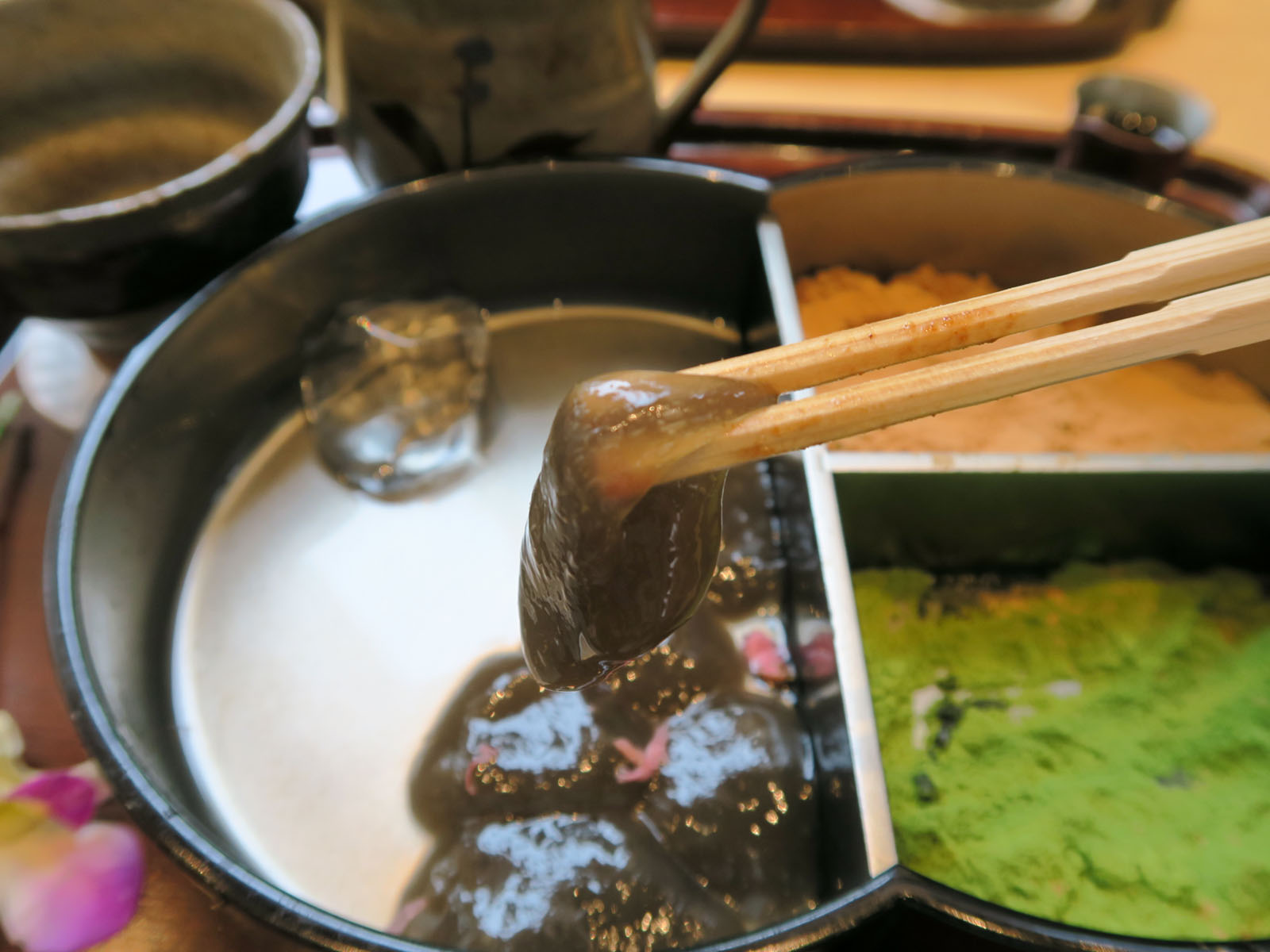 蕨もちはお箸で持ち上げるのが難しいほど柔らかくてプルンプルン。