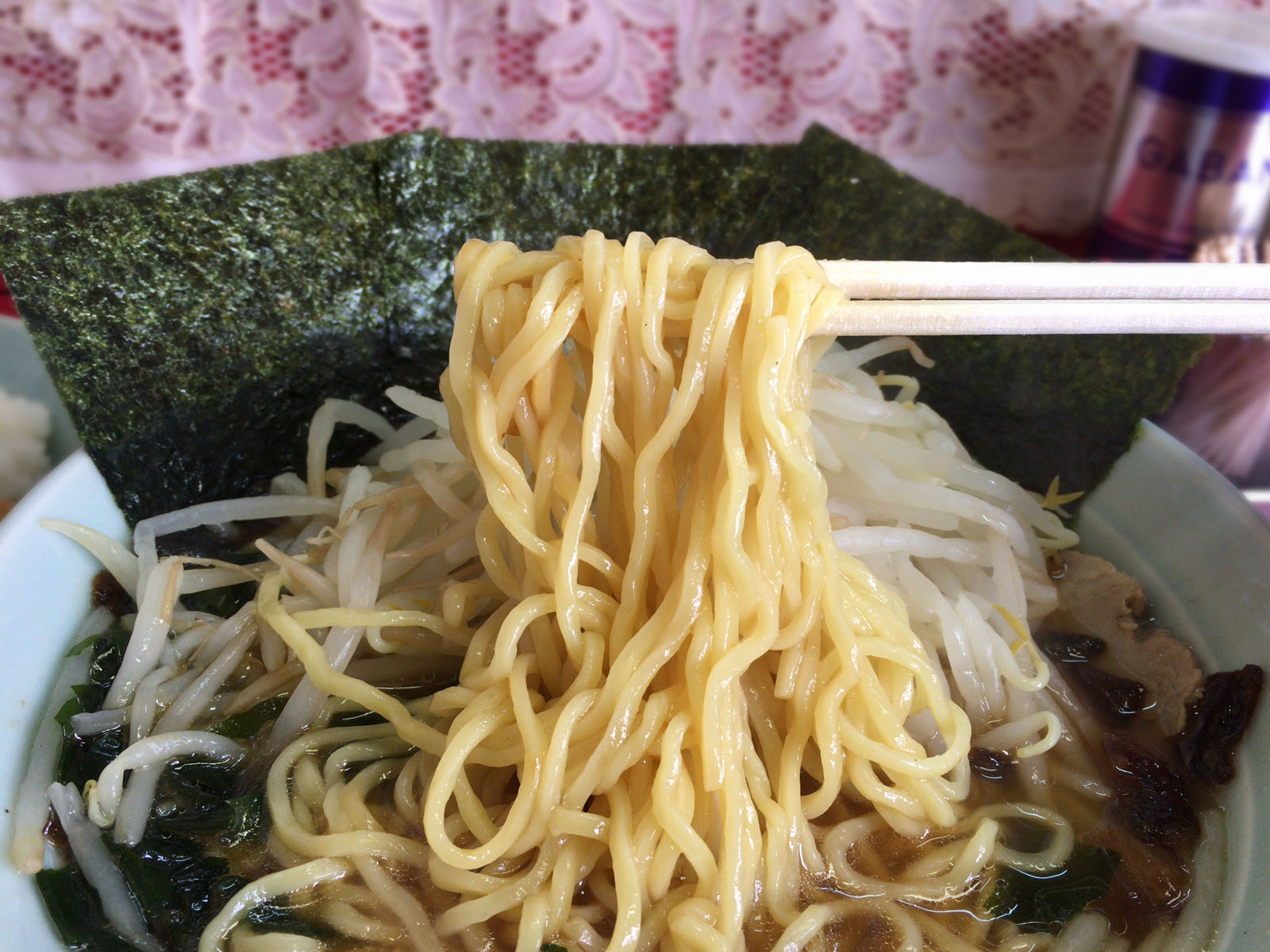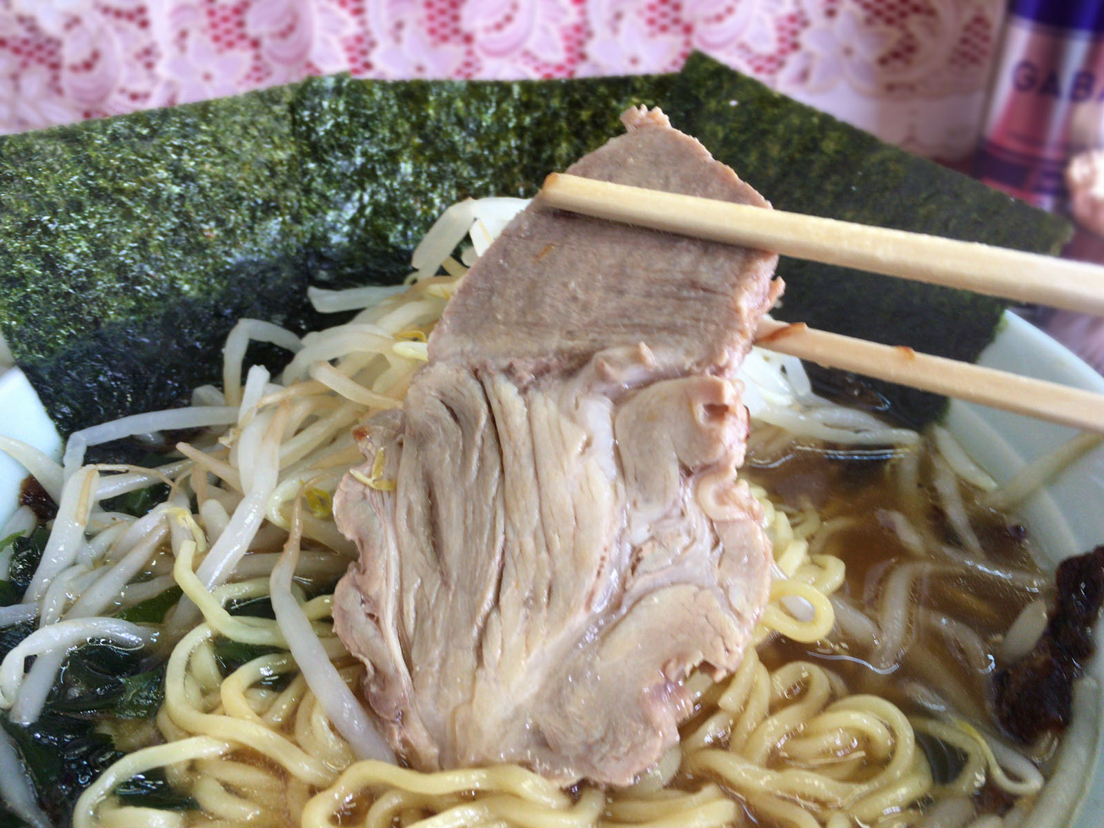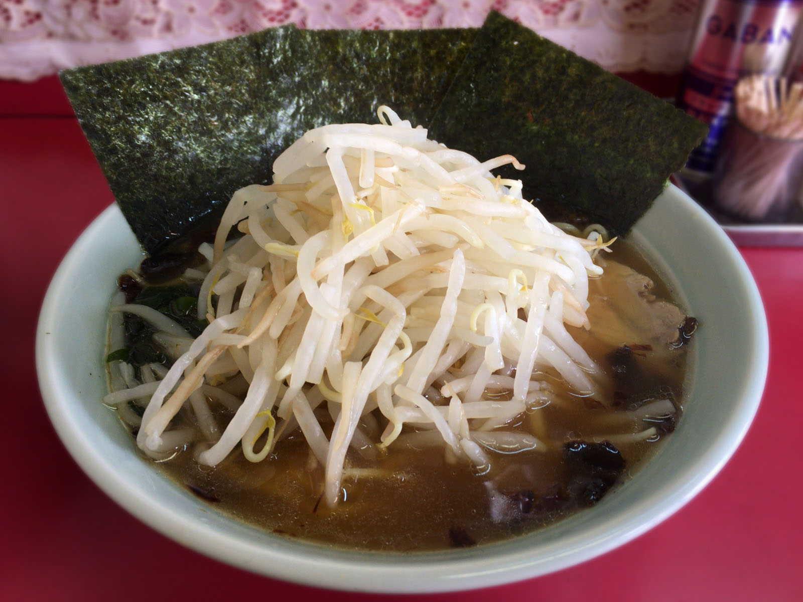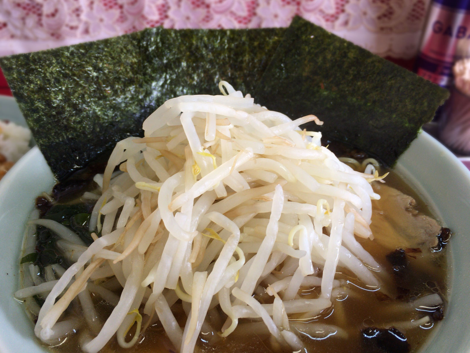 チャーシューとワカメは山盛りのモヤシの下に隠れています。