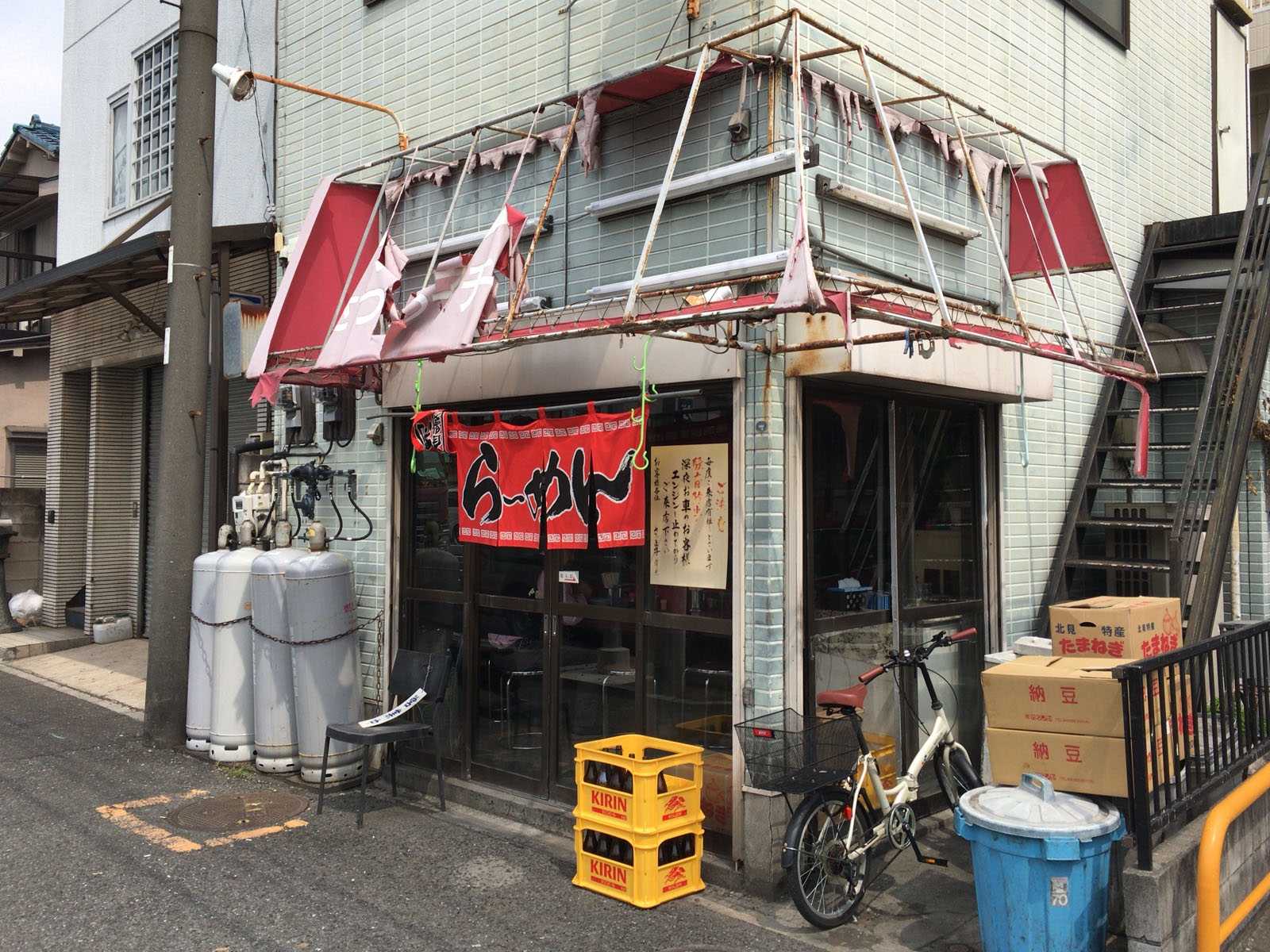 お店は軒先のテントが被れたままになっており、もはや店名の判別が不能。