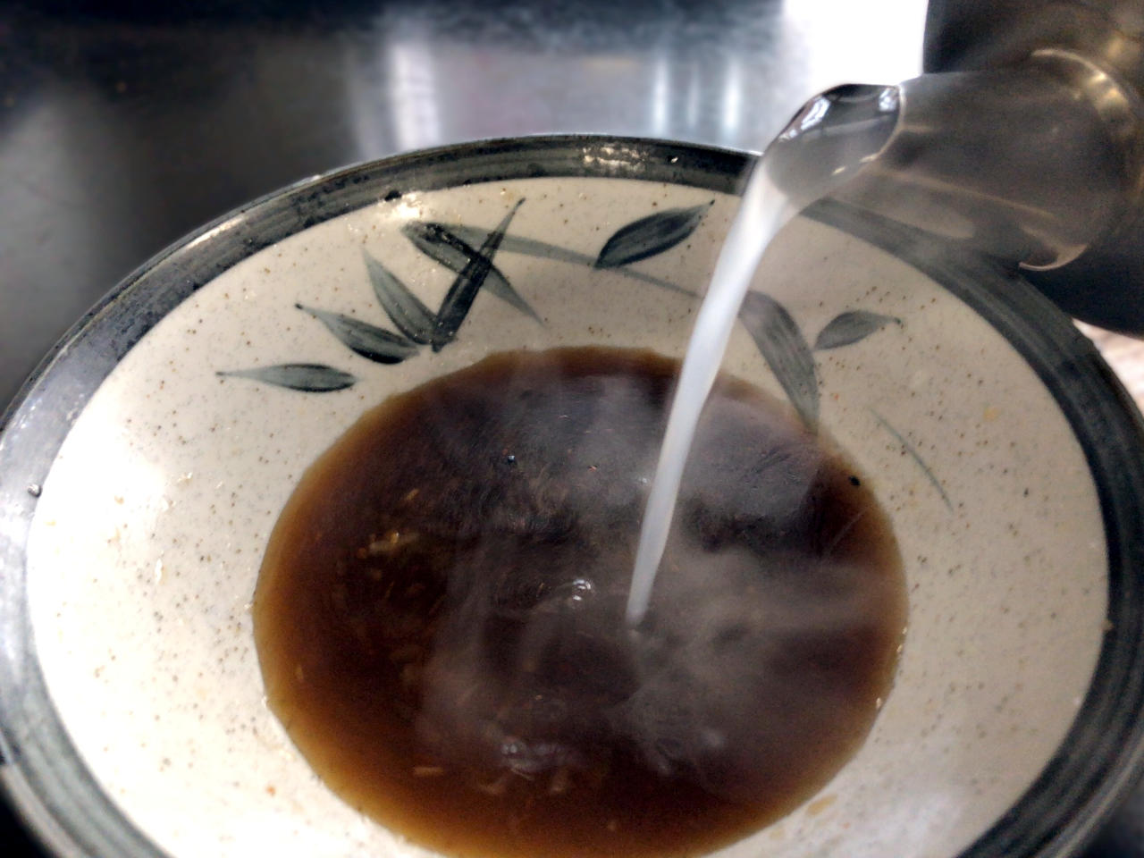 最後に蕎麦湯をたっぷりかけ汁に注いで味わい、完食です。