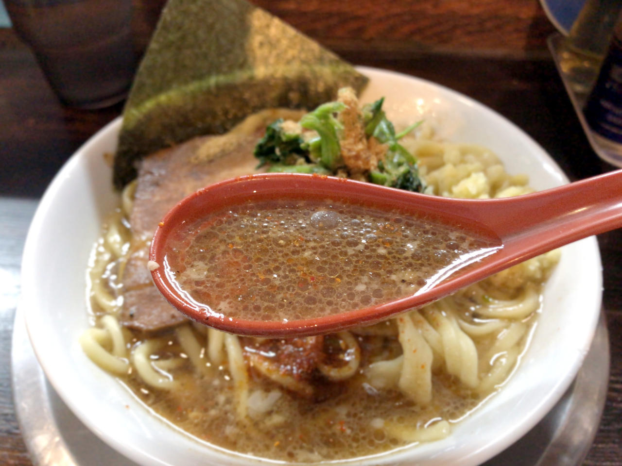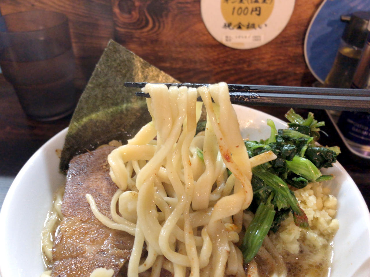 海苔は厚めで、スープに合っています。