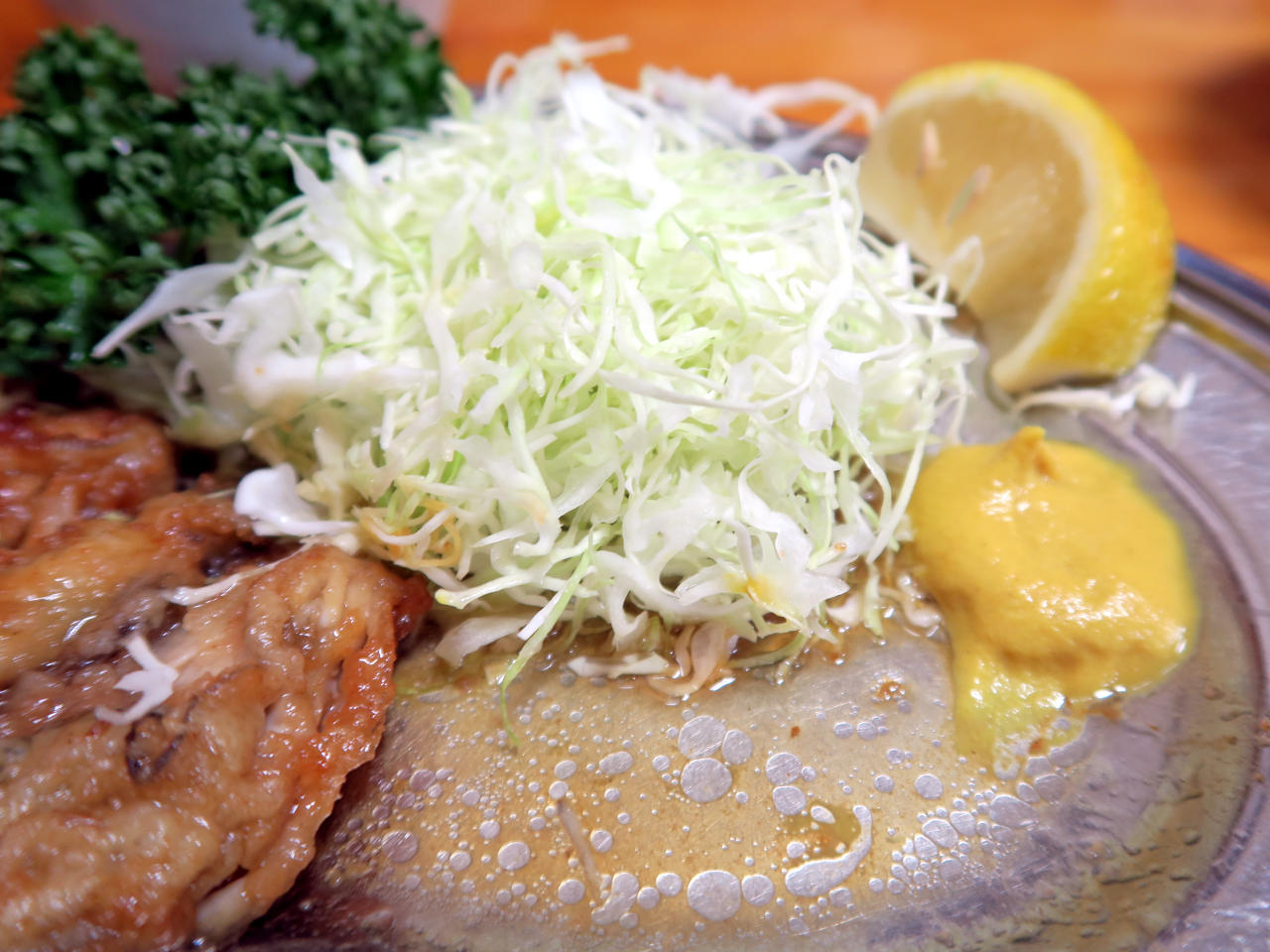キャベツの千切りは手切りだそうで、細かく綺麗に刻まれています。