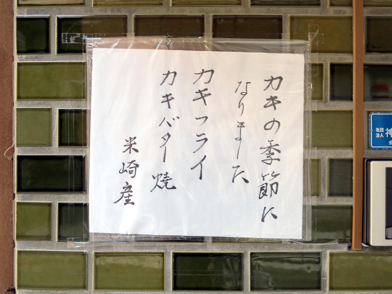 例年は10月になると「カキの季節になりました」と書かれた紙が店先に貼り出され、カキフライとカキバター焼がスタートするのですが、今年は店主が体調を崩されて暫く休業していたため、12月3日の営業再開と共にスタート。