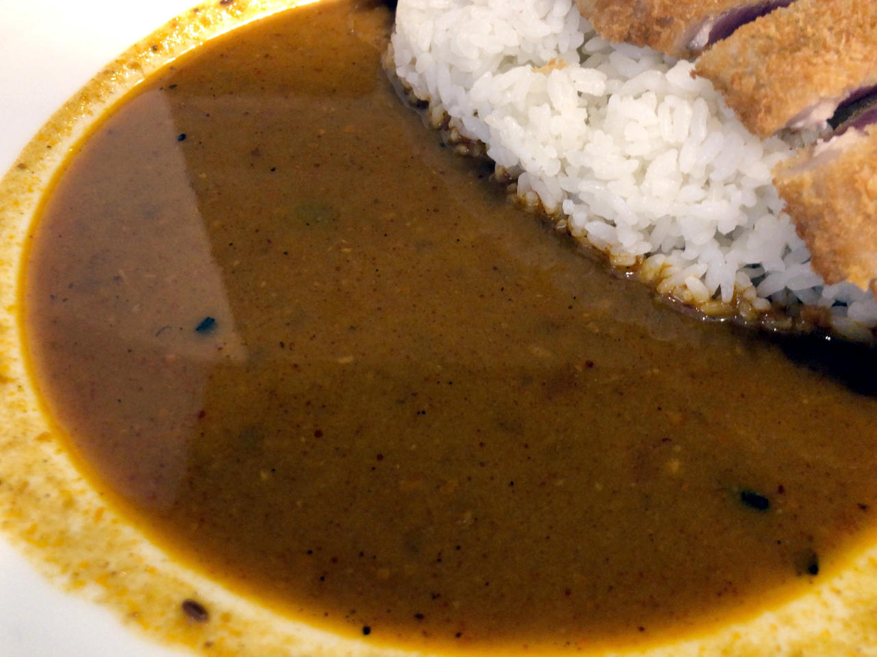 カレーソースは濃い褐色をしており、サラサラしたスープ状。