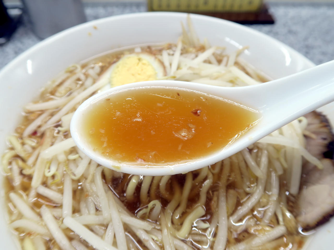 表面にはこのスープの特徴である揚げネギが浮いています。