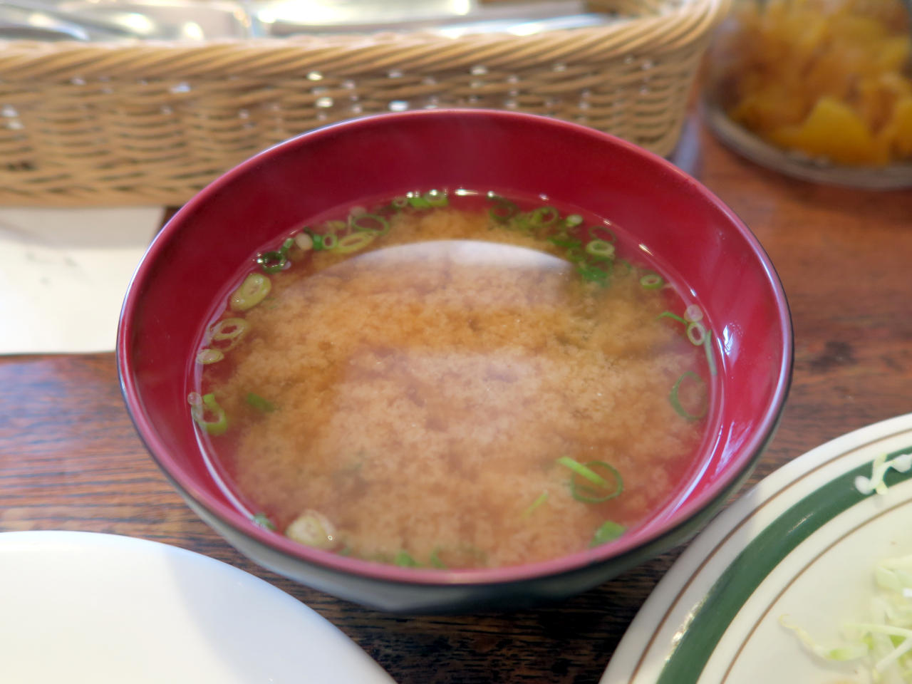 味噌汁の具はワカメと刻みネギ。