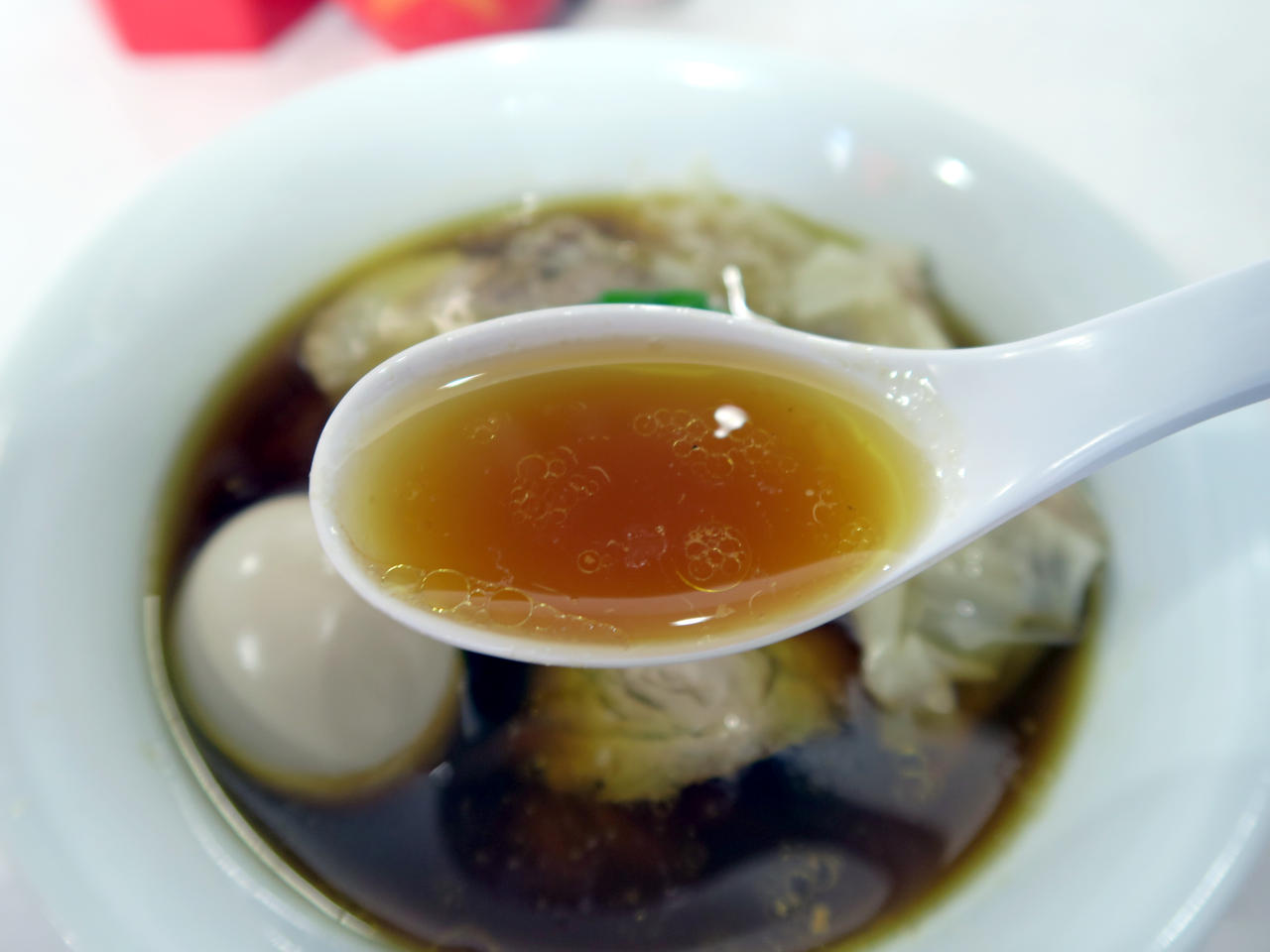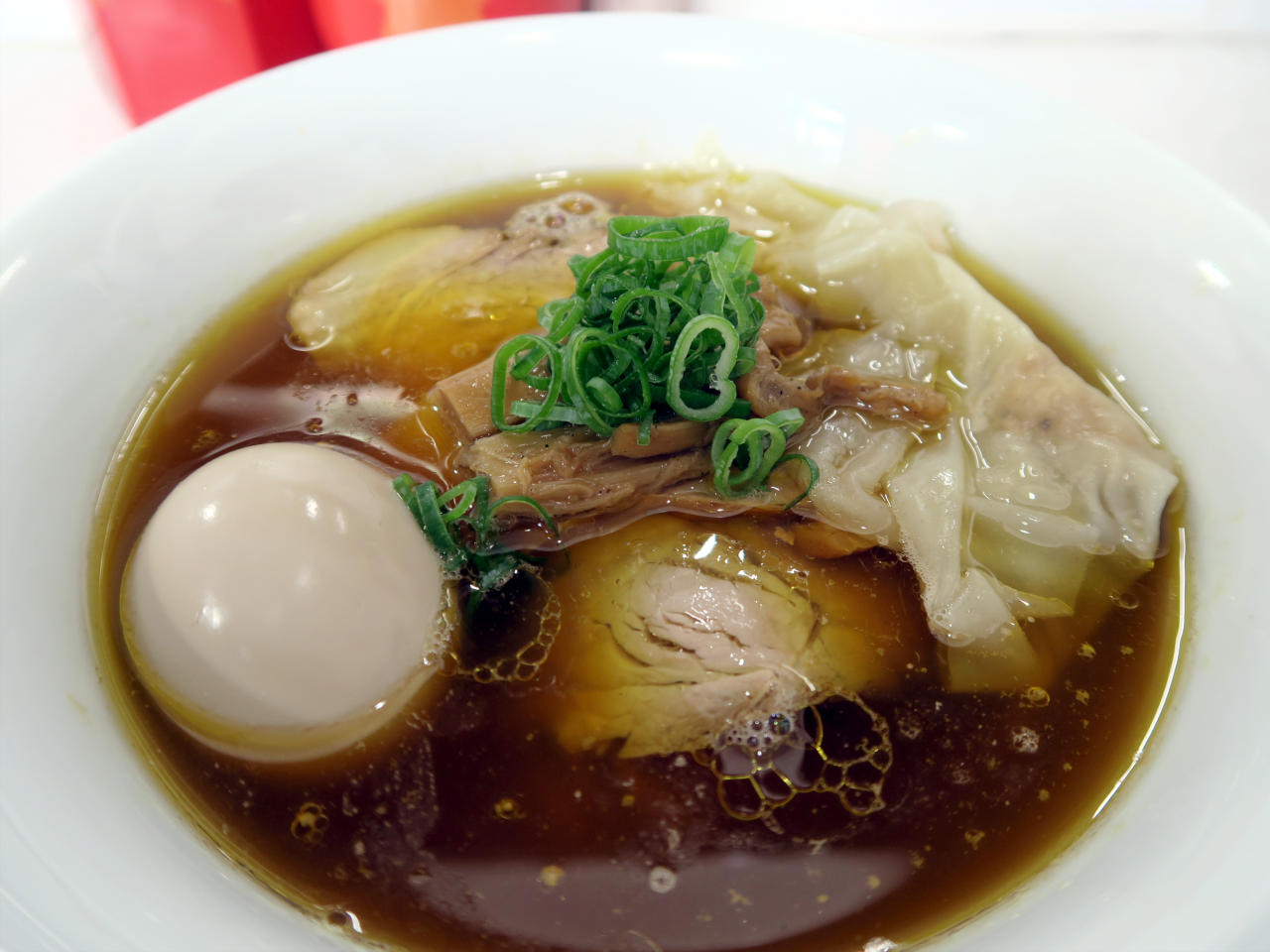 ワンタンはほど良く生姜の風味が効いていて、ネギのシャリシャリ感が食感のアクセントになっています。