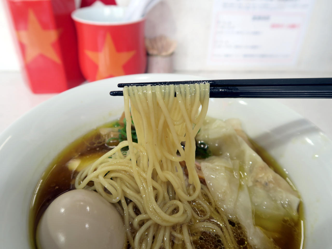 スープを良く持ち上げ、小麦の風味が豊かです。