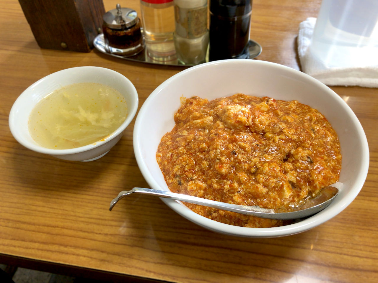 麻婆丼はスープ付きです。