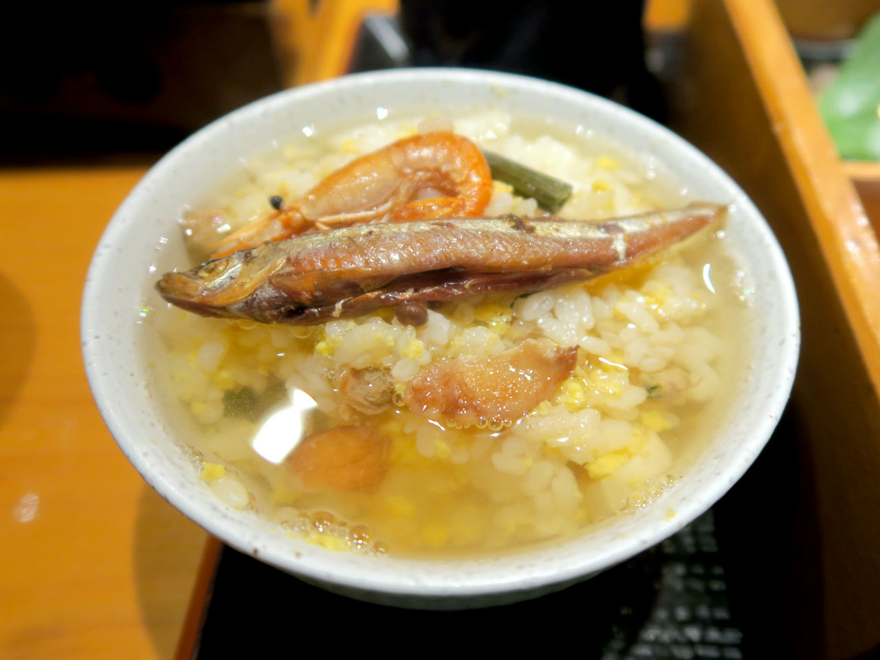 1杯目をそのまま食べた後、2杯目はだし汁をかけてサラサラっとかき込みました。