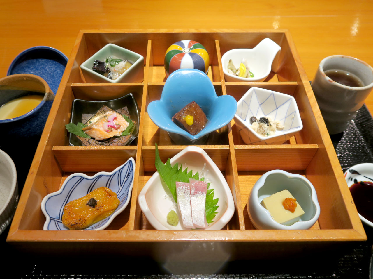 季節の九角は旬の素材を使った小鉢料理9品が盛り付けられています。