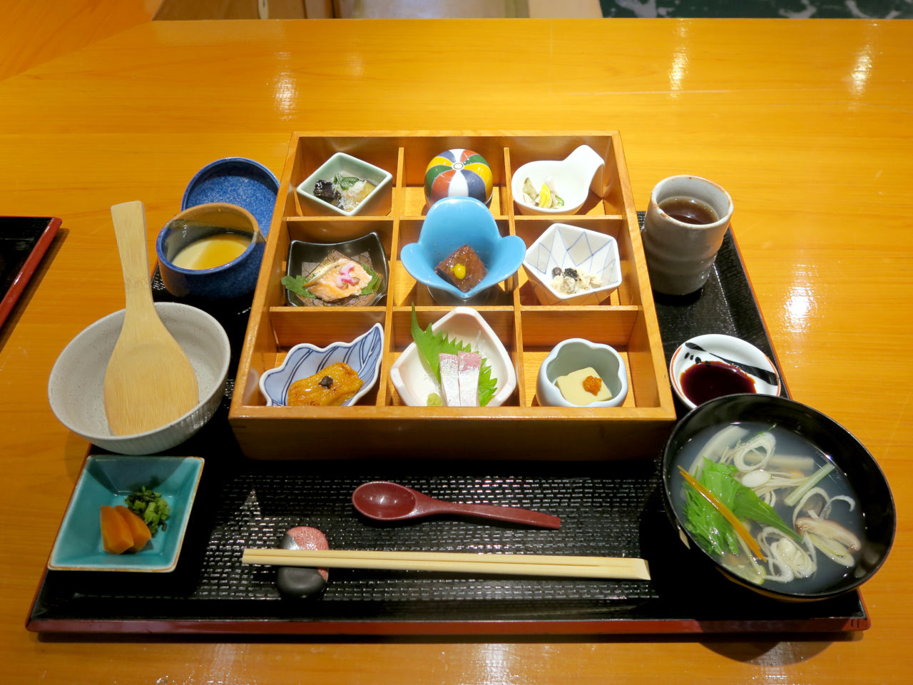 注文したのはランチ限定の宍道湖七珍せいろ膳の九角付きで、15分ほどで提供されました。