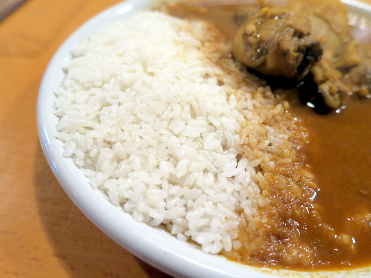 ライスは固めに炊かれた日本米。