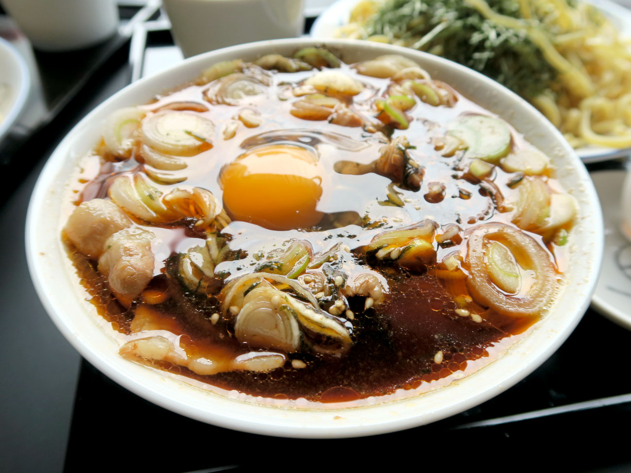 途中、添えられた生卵を落とすとグッとまろやかになります。
