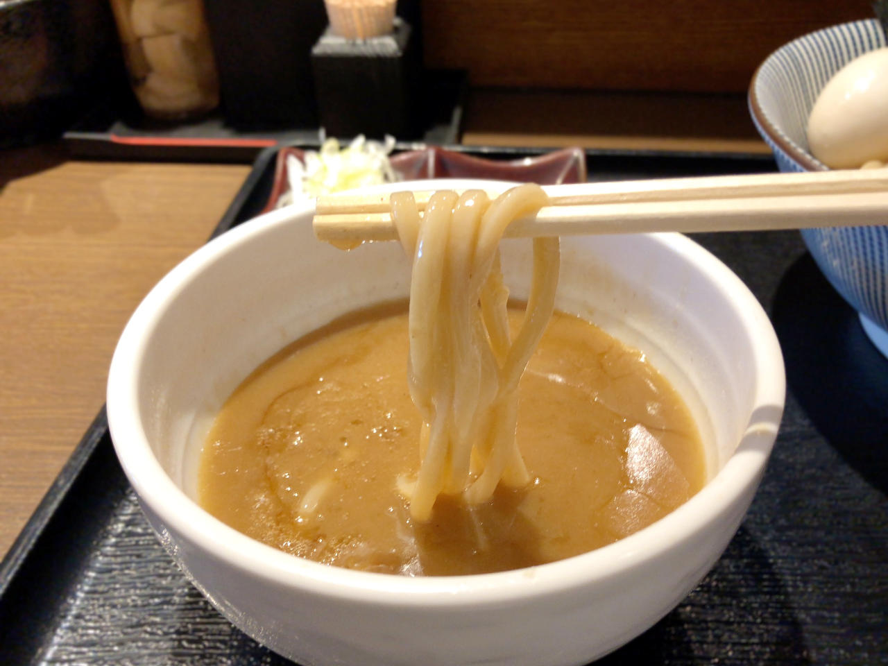 途中で薬味を投入してみましたが、柚子胡椒がこの濃厚つけ汁に合いますね。
