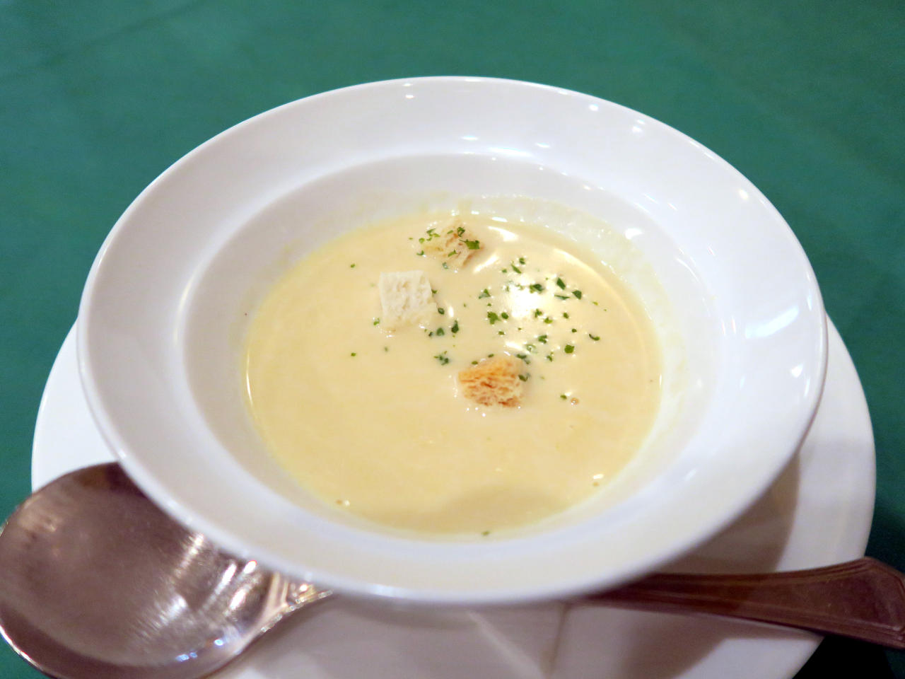 スープはクルトンを浮かべたコーンポタージュ。