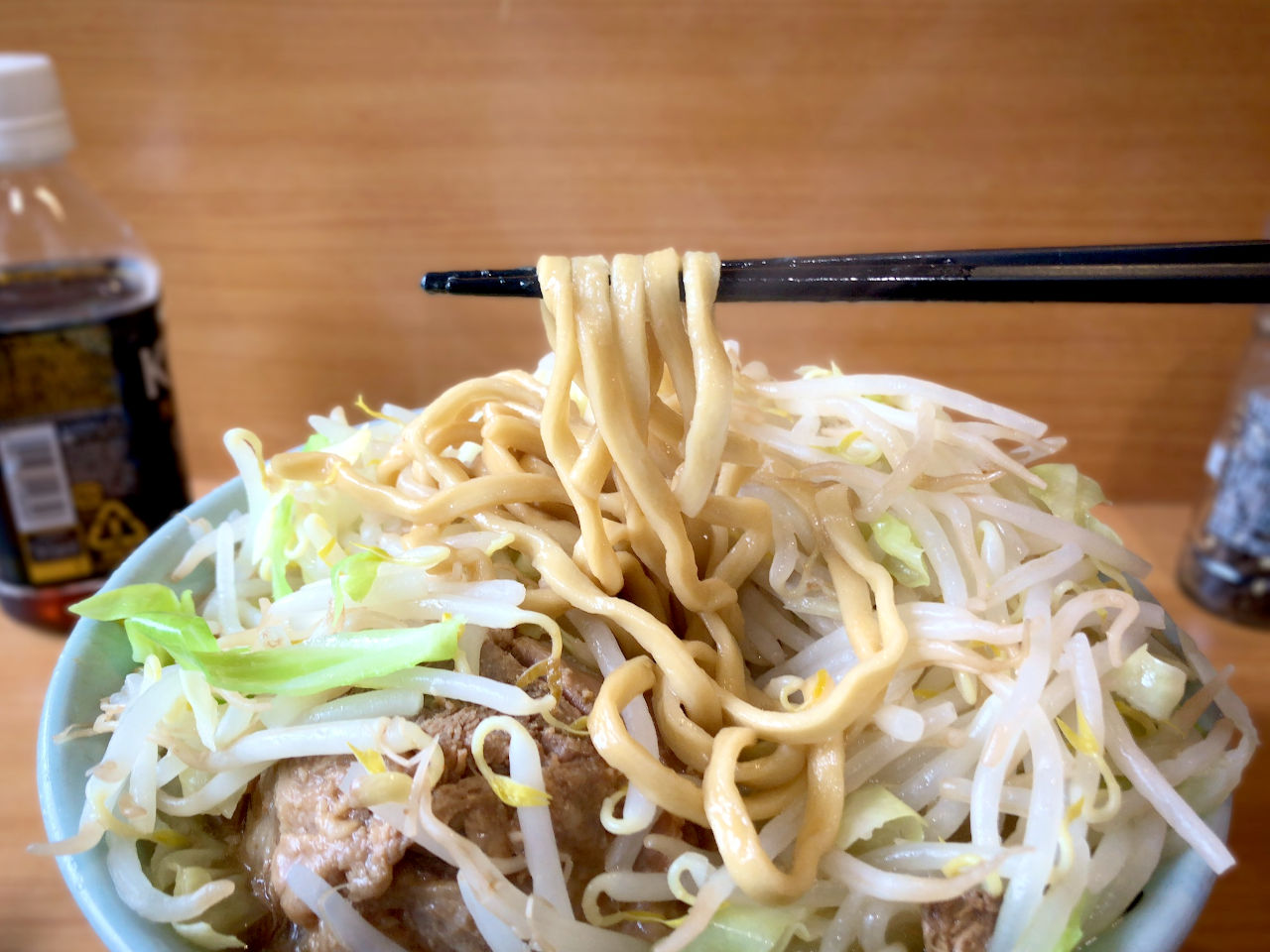 麺量は小でも300~350gもあり、二郎各店の中でも多い方です。